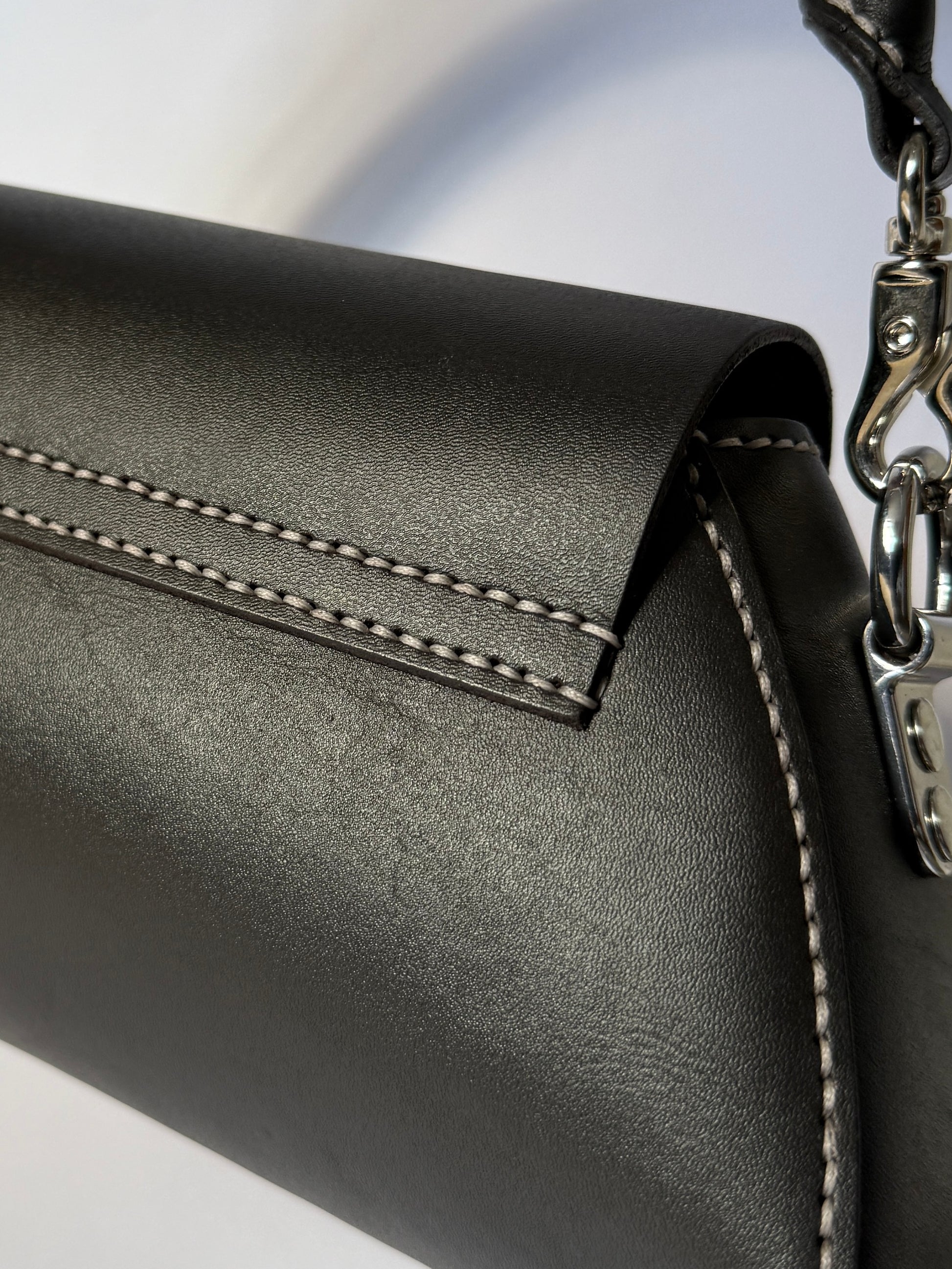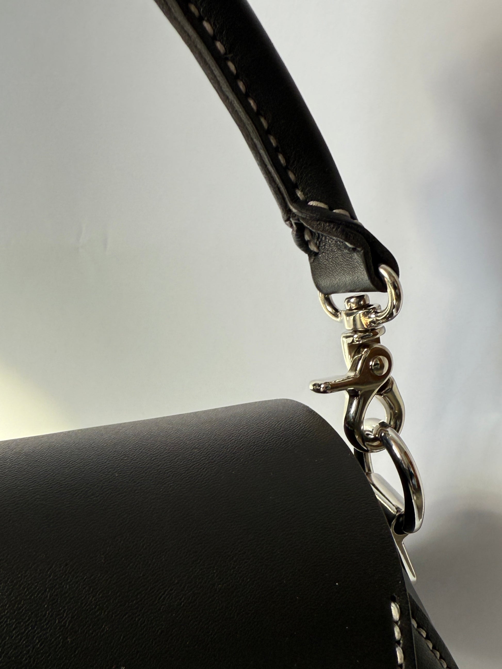 Effortless elegance, redefined. This handcrafted handbag in sleek black leather is a timeless piece designed to transition seamlessly from day to evening.